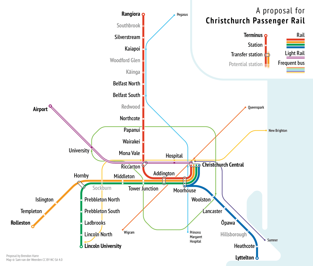 Brendon Harre reached out a few months ago and asked if I could make a couple of maps to illustrate his paper on how mass transit could be developed in Christchurch.